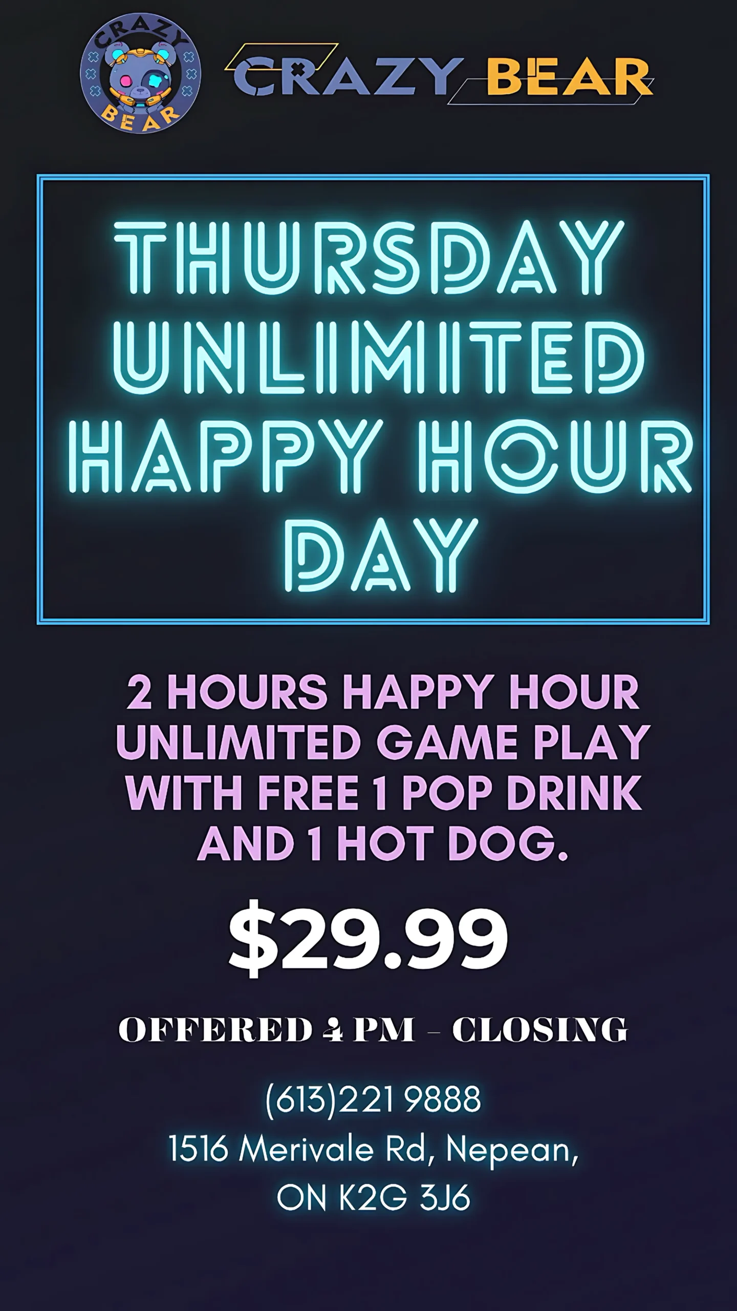 Looking for the ideal venue for a birthday party Ottawa or special event in Ottawa? Look no further than Crazy Bear! Our venue is perfect for any occasion, offering you complete control over the guest list, activities, and catering. See why we’re the go-to choice for unforgettable celebrations in Ottawa!
